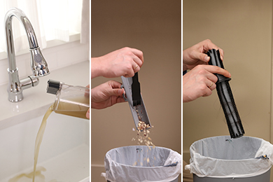 A HIZERO F600 nem csupán megkönnyíti a karbantartást, hanem biztosítja annak a lehetőségét is, hogy minden szennyeződés a megfelelő helyre kerüljön. Az összes szilárd szennyeződés egyben kidobható a szemetesbe, az összes folyadék pedig a lefolyóba önthető. Ez a megoldás amellett hogy intelligens, környezetbarát is.